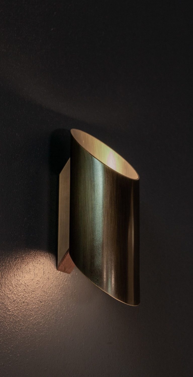 Patined and satin brass